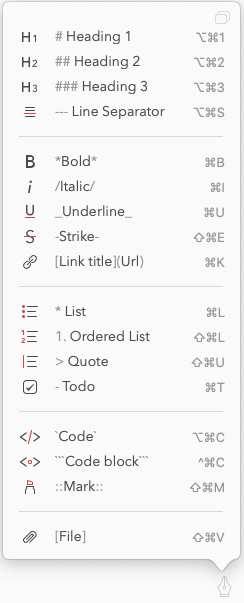 Big toolbars are gone. Creating headings, subheadings, bold, italics, and block quotes are done with Markdown. Organization is simple and automatic.