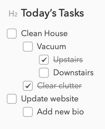 I use Bear to break down what I’m currently working on into smaller tasks so nothing is missed and next actions are obvious. Bear also keeps track of Todos across all your notes so they’re easier to find.