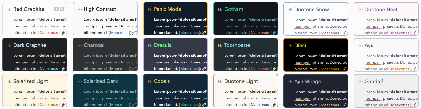 Themes are part of the pro subscription (~$20 a year) and are nice to have. The switch between dark and light themes throughout the day feels almost required in 2020 software.